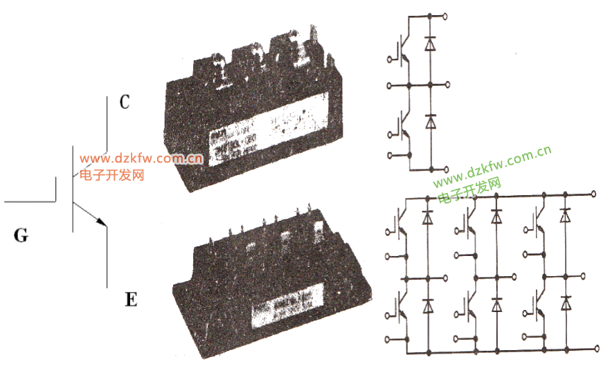 IGBT是MOS和GTR取长补短相结合的产物,具有栅极G、集电极C、和发射极E的三个引出端。