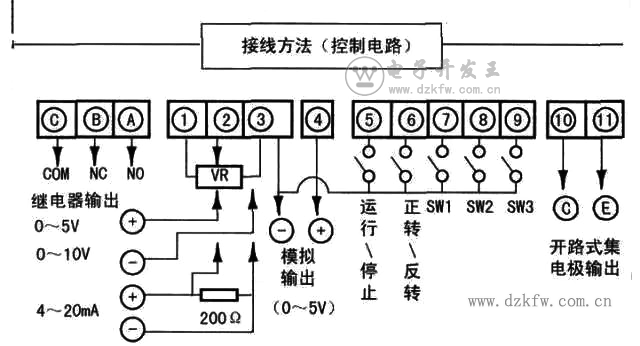 2、由于控制电路的频率输入信号是微小电流,所以在接点输入的场合,为了防止接触不良,微小信号接点应使用两个并联的节点或使用双生接点。