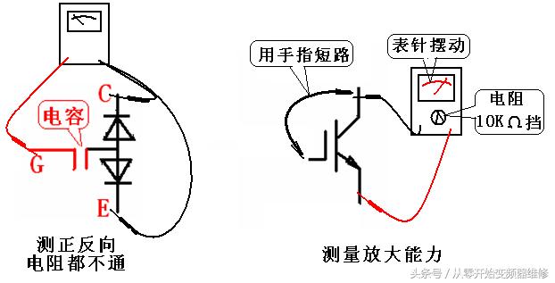 红表笔接R、S、T,黑表笔接N。表针摆动到刻度的3/5,正常,不摆动,断路;摆动到0Ω,管子短路(该现象很少见,因短路电流很大,管子必然烧断)