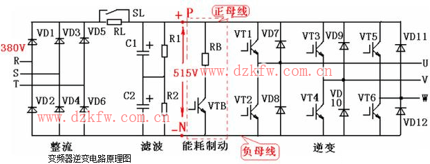 维修方法:首先进行U、V、W电压测量,根据测量数据,进行正确判断。