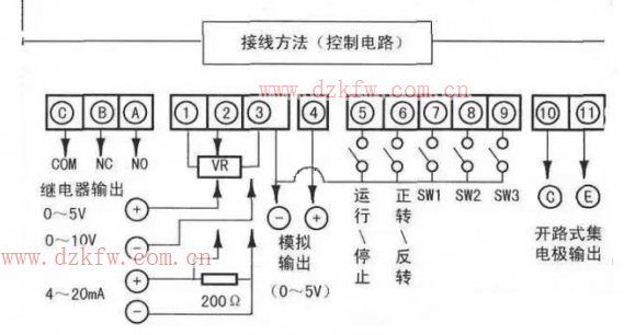 2、由于控制电路的频率输入信号是微小电流,所以在接点输入的场合,为了防止接触不良,微小信号接点应使用两个并联的节点或使用双生接点。