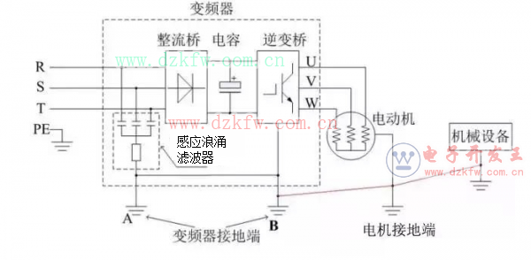 1、由于在变频器内有漏电流,为了防止触电,变频器和电机必须接地。
