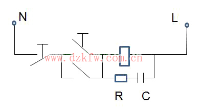 当线圈瞬间断电时产生很高反峰电压,该电压会对电容C充电而迅速降低。对于直流电源供电的控制电路,可在线圈两端接二极管来吸收反峰电压,如图所示: