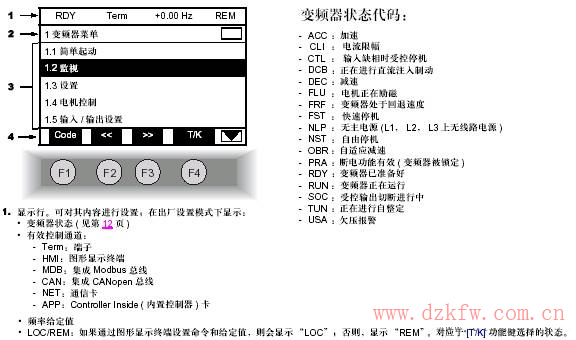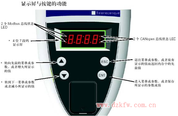 施耐德ATV61变频器操作面板按键布置为: