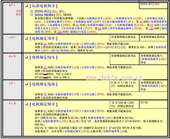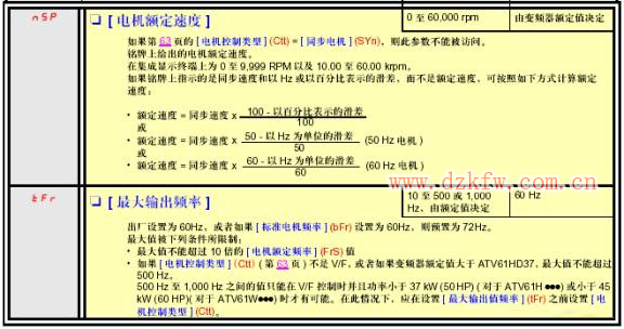 具体参数请参阅ATV61用户手册。