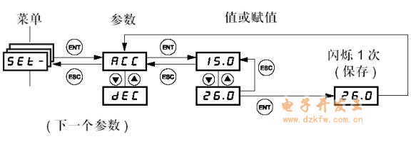 按“ENT”按键,保存修改过的参数值,屏幕闪烁一次表示保存成功;