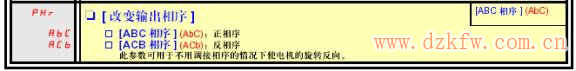 如果电机转向不正确,可在“1.1简单设置”菜单或“1.4电机控制”菜单中修改PHr参数。