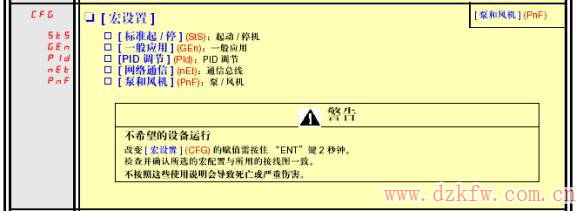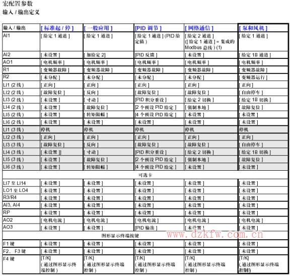 针对不同负载的控制要求,施耐德变频器预先定义了宏配置,定义了I/O端子的初始功能。