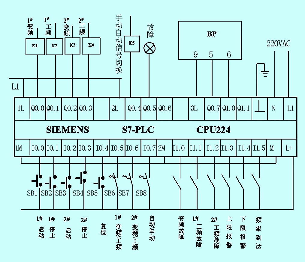 此系统中,PLC作为系统的控制核心,起着至关重要的作用。尤其变频自动加减泵的过程,关系到系统的安全和调节的平滑性,在编程的过程中应该注意。其原理图如图1所示。