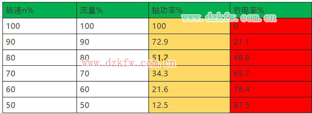 当所需风量、流量减少时,利用变频器调速的方式来调节风量和流量,可以大幅度地节约电能。附图5为泵类负载节电理论依据。