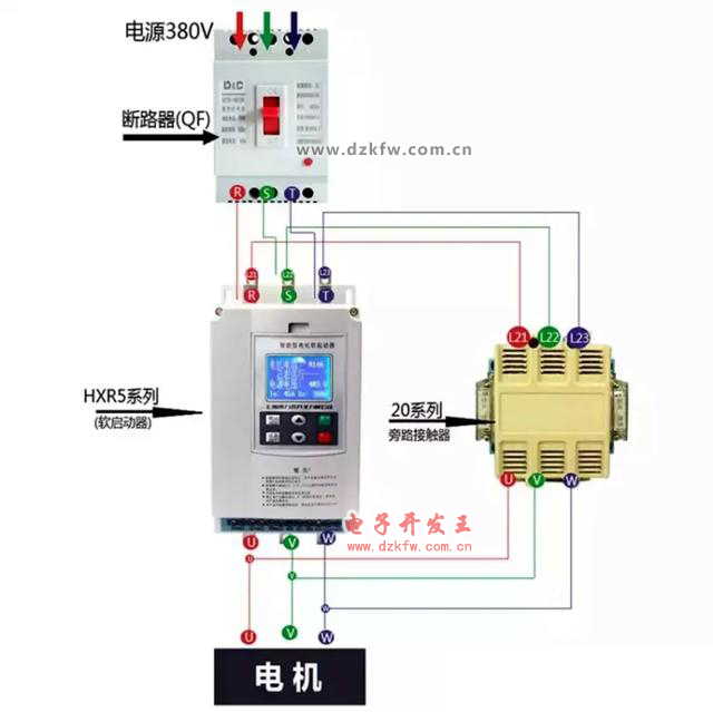 软启动器均需要另外选配一个旁路接触器,并且通过简单的接线,使两者组合使用,但当工况所在的变压器容量较小,降压较大的时候外置的旁路接触器往往就无法正常工作。