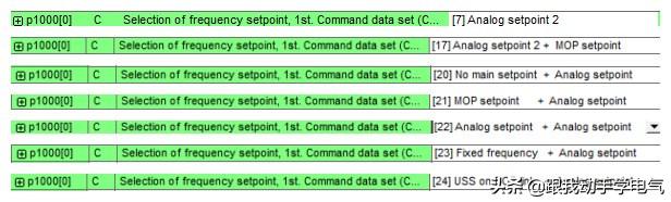 P1000(0)=12;2模拟量设定(主频率源)+1MOP设定频率(辅频率源)