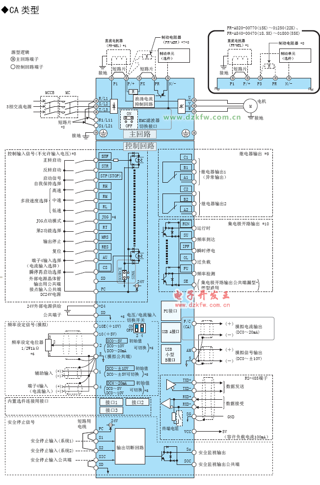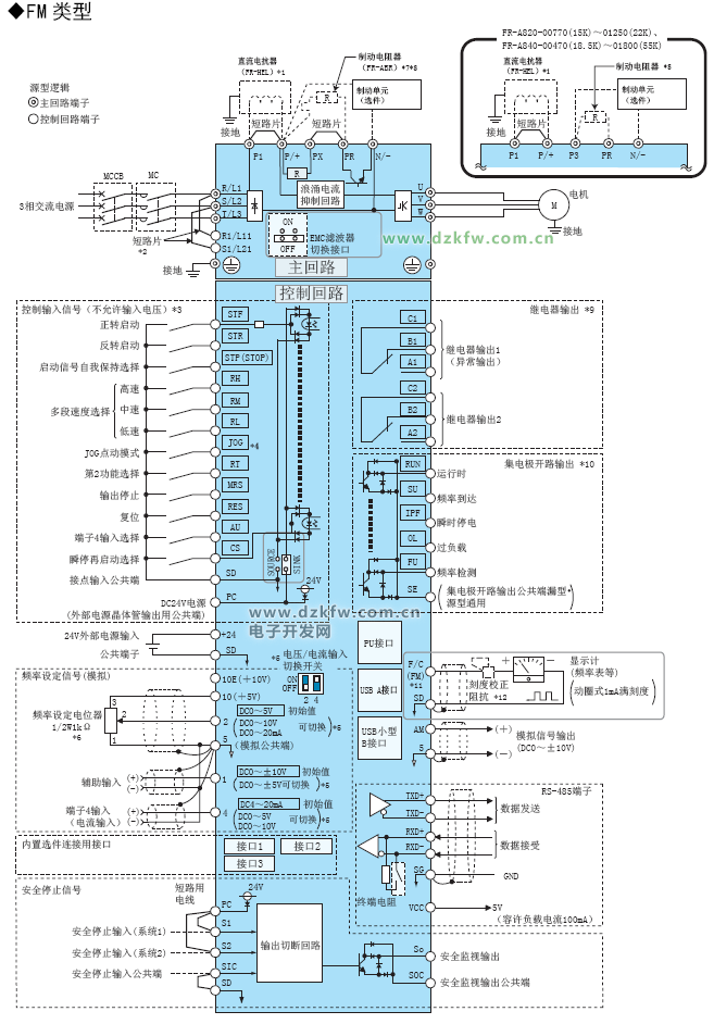 三菱变频器FR-A800各类型接端子接线图(FR-A800端子接线图、FR-A800接线图、FR-A800外部接线图)