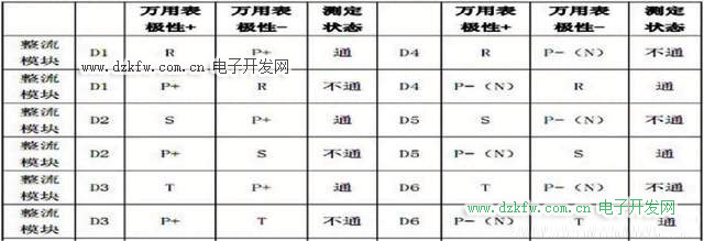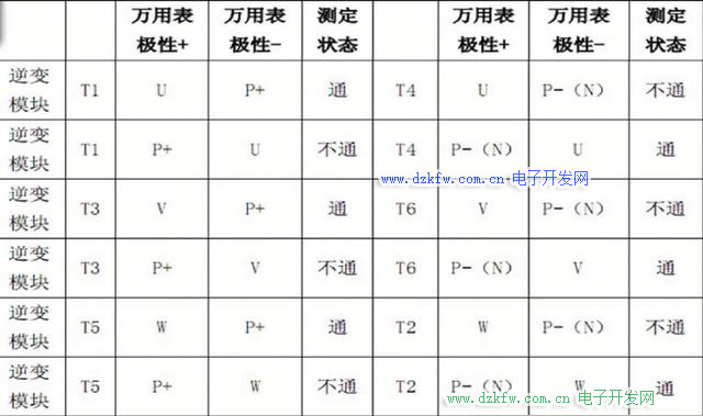 功率模块检测方法:同万用表二极管档。按如下表来检测: