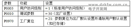 在调试参数之前对变频器进行恢复出厂缺省值操作,方法如下: