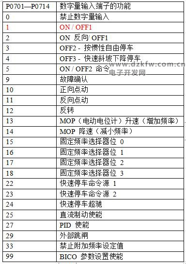 设置外部输入端子的功能P0701至P0704,方法如下: