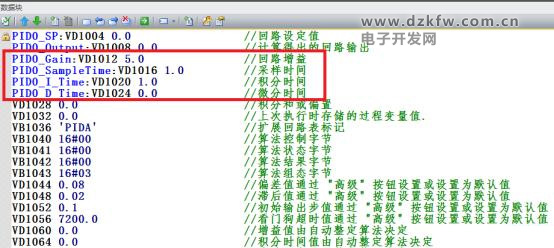 编写好程序后可以通过向导数据块找到P回路增益,I积分时间,D微分时间的地址,通过修改值来进行调节,PID参数需设置成断电保持类型。如下图所示: