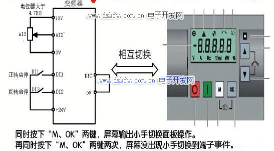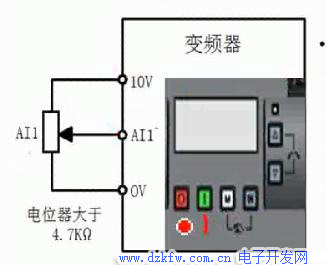 3、端子启停,AI2(AI1)端输入频率与面板启停,面板调速一同切换功能。