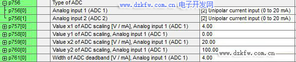 P0756(0)=2,3;AI端0~20mA电流输入。