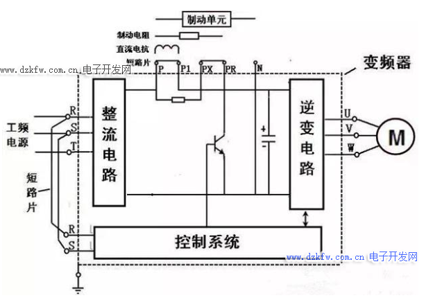 从上图可以看出,变频器的结构是,先把工频电源,整流成直流,逆变成可变电压和频率的电源来带动电机,任何变频器都一样,只要接对主回路和控制回路就好了。