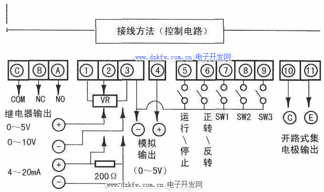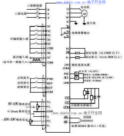 2、由于控制电路的频率输入信号是微小电流,所以在接点输入的场合,为了防止接触不良,微小信号接点应使用两个并联的节点或使用双生接点。