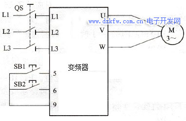 设置端子5与端子9接通时电动机正转,断开停止 |