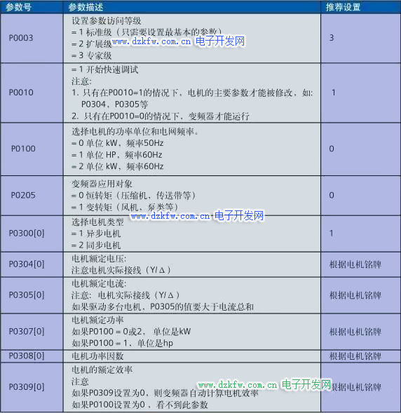 在参数复位完成后,需要进行快速调试的过程。根据电机和负载具体特性,以及变频器的控制方式等信息进行必要的设置之后,变频器就可以驱动电机工作了。