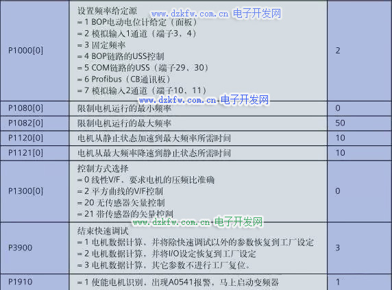 在完成快速调试后,变频器就可以正常的驱动电机了。下面就可以根据需要设置控制的方式和各种工艺参数。