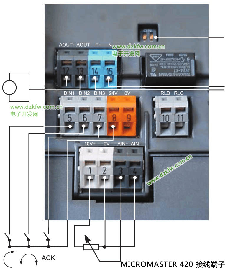 对于直接控制,BOP直接安装在变频器的前面板上。如果要“快速调试”变频器,需要使用《入门指南》。对于其它调试方式,请参阅《操作说明》或者《参考手册》。