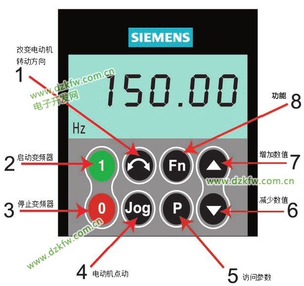 2.启动变频器本按钮可以启动变频器。缺省状态下该按钮被禁