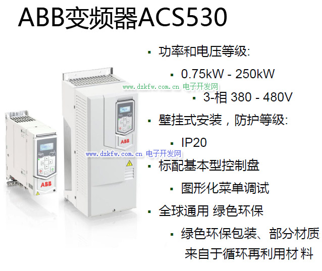 ABB ACS530变频器是ABB推出的一款通用型传动产品。其丰富的内置功能及紧凑设计在简化工业应用操作的同时,确保在恶劣的环境条件下的高可靠性应用。