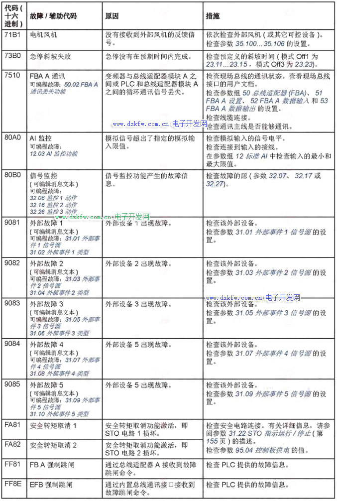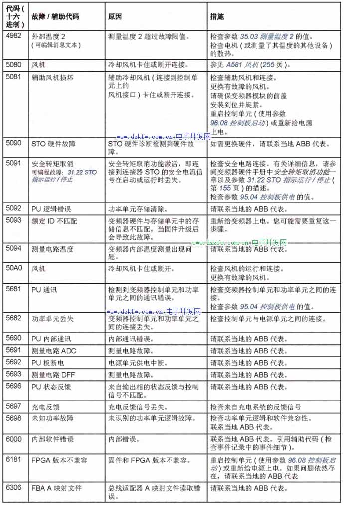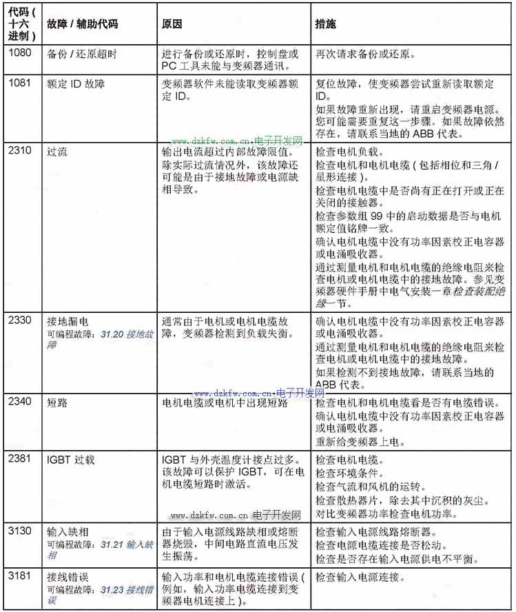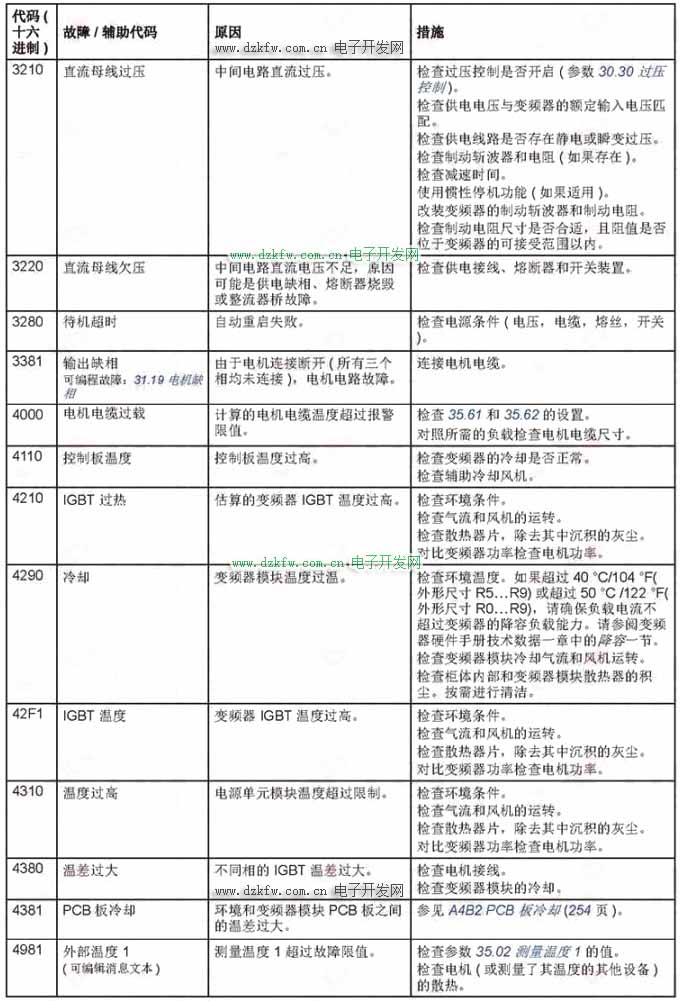 ABB ACS530在使用过程中遇到故障,可以通过以下故障代码来对故障进行分析,并采取相应维修措施进行修复。