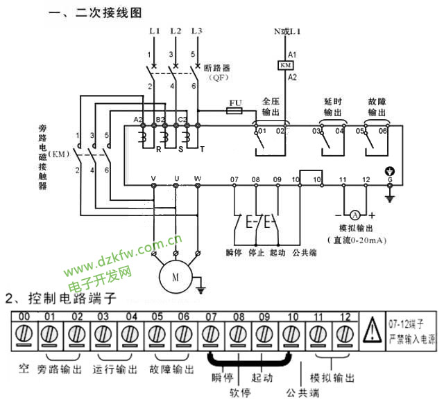 软启动器的软停车功能软启动过程相反,电压逐渐降低,转数逐渐下降到零,避免自由停车引起的转矩冲击,这里就不过多地介绍。