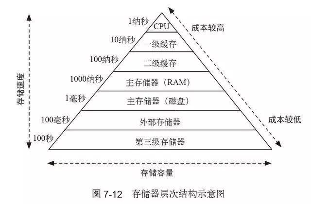 如前所述,计算机配有不同类型的存储器,它们按层次结构排列。性能最好的存储器容量有限且成本极高。沿层次结构向下,可用的存储空间越来越多,但访问速度越来越慢。