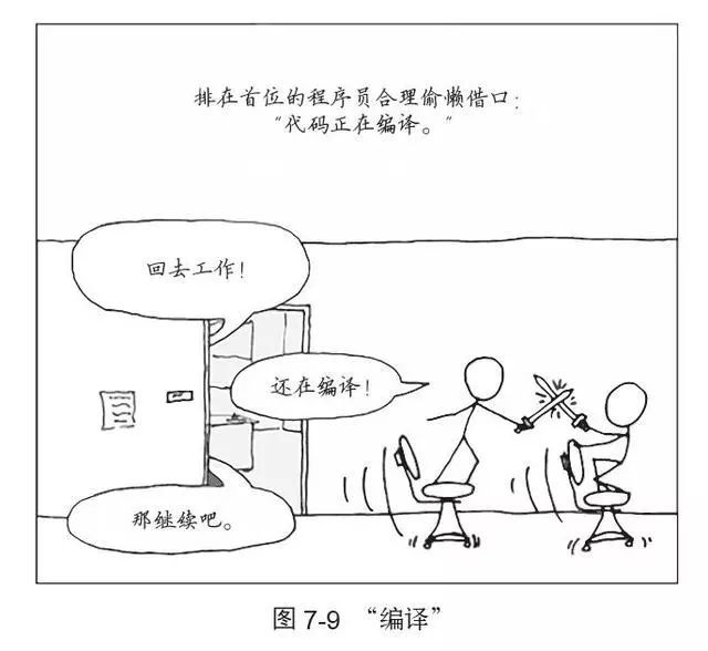 Google 工程师必须不断编译大量代码,导致程序员“损失”了很多时间(图7-9)。由于需要保证编译后的二进制文件有更好的性能,Google 无法切换到脚本语言。公司为此开发了Go 语言,它的编译速度极快,同时仍然保持很高的性能。