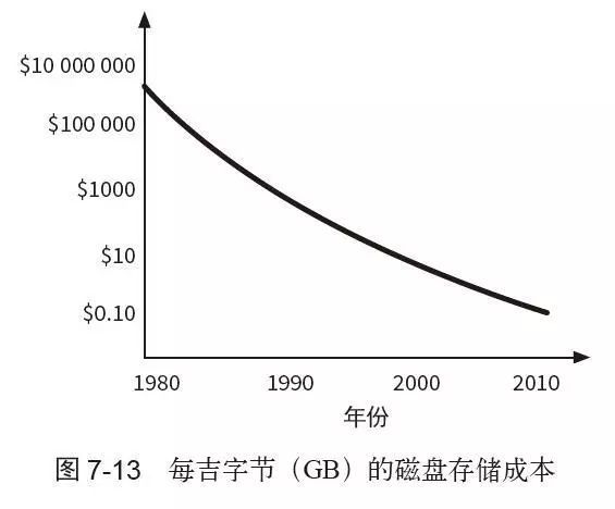 一方面,很难显著改进“快速”存储器(位于存储器层次结构顶端)所用的技术;另一方面,“慢速”存储器的速度越来越快,价格也越来越低。几十年来,硬盘存储的成本一直在下降,这种趋势似乎还将持续下去。