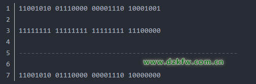 将IP地址和子网掩码换算为二进制,子网掩码连续全1的是网络地址,后面的是主机地址,虚线前为网络地址,虚线后为主机地址