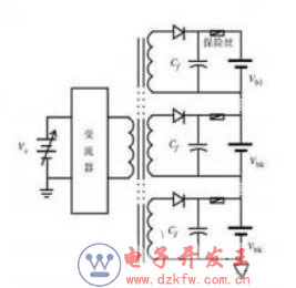 如果你想利用下面的电路示意图,做一个多路输出的反激电源,利用各个模块的输出电压来对电池实现均衡,我估计你需要很深的功力才可以,因为单单交叉调整率这一项就很难。但是,利用这个电路,我们可以换一下思路,各路输出不需要稳压,当然为了防止开路损坏输出电容,我们可以做一个简单的原边反馈。然后在每路输出到电池之间串联一个电子开关,由于这种均衡是配合电池管理系统一起工作的,因此每路输出只要串联一个电子开关,由管理单元控制即可,哪路电压地我们就可以打开这个电子开关,有电源输出给该节电池充电,直到所有单体电池电压达到我们的期望值。