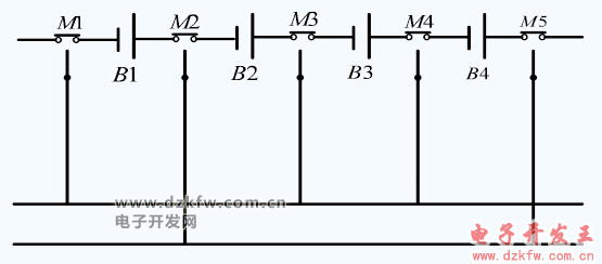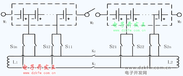 如下图所示的并联拓扑结构,每节单体电池都有一个单刀双掷的开关继电器,所以 n 节串联电池组内需要 n 1 个继电器。