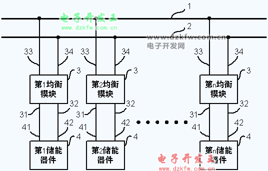 理想的均衡方式是所有电池能量及端电压相同,并联电池组内单体电池电压始终相等,因为和连通器原理一样,两边水柱永远水平,并联电池也先天性的单体电压高的自发给单体电压低的电池充电。但串联电池组内想要应用此原理,就需要稍微改变原电池组拓扑结构。