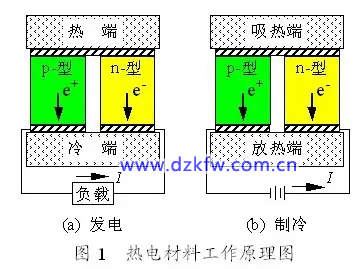 温差半导体发电是一种新型的发电方式,即利用塞贝克效应将热能直接转换为电能: 将P型和N型结合的半导体元件组成的器件的一侧维持在低温,另一侧维持在高温,这样器件高温侧就会向低温侧传导热能并产生热流。即热能从高温侧流入器件内,通过器件将热能从低温侧排出时,流入器件的一部分热能不放热,并在器件内变成电能,输出直流电压和电流。通过连接多个这样的器件便可获得较大的电压。该器件即为目前应用日益广泛的温差发电片。 由半导体温差发电片制造的半导体发电机有着无噪音、寿命长、性能稳定等特点。随着现代社会保护环境、节约能源的呼声越来越高、人们更多地在考虑如何有效地将太阳热、海洋热、地热、工业废热、燃烧垃圾的发热等地球上各种热源产生的热能转化为电能。因此半导体温差发电技术必将得到更广泛的应用。便携式小型电源
