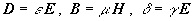 (2) 应用麦克斯韦方程组解决实际问题,还要考虑介质对电磁场的影响。例如在各向同性介质中,电磁场量与介质特性量有下列关系:。 在非均匀介质中,还要考虑电磁场量在界面上的边值关系。在利用t=0时场量的初值条件,原则上可以求出任一时刻空间任一点的电磁场,即E(x,y,z,t)和B(x,y,z,t)。