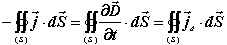 上式左边表示流入闭合面的传导电流,右边表示流出闭合面的位移电流。且