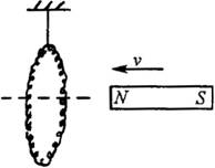 2、如图所示,一轻质闭合弹簧线圈用绝缘细线悬挂着,现将一根条形磁铁的N极,垂直于弹簧线圈的平面靠近线圈,在此过程中,弹簧线圈将发生什么现象?