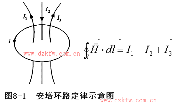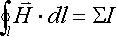 沿任意闭合回路l(常取磁通作为闭合回路)的线积分, ∑I是穿过该闭合回线l所围面积的电流的代数和,且该式与磁场中介质的分布无关。其中电流的正、负要看它的方向和所选路径的方向之间是否符合右手螺旋法则而定。当电流的参考方向与闭合回线的绕行方向符合右手螺旋法则时,该电流前取正号,反之取负号。
