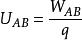 1.举个例子,如果是5C的正电荷,从A点移动到B点,电场力做功50J,那么UAB=50/5(v)=10(v);
