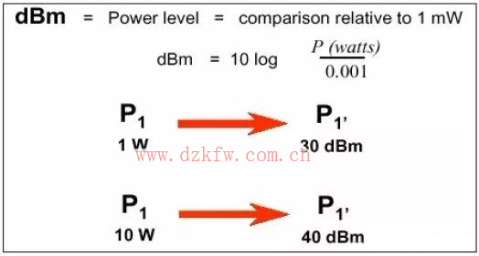 通常用 dBm 表示功率的单位,dBm 即是功率相对于 1mW 的值: