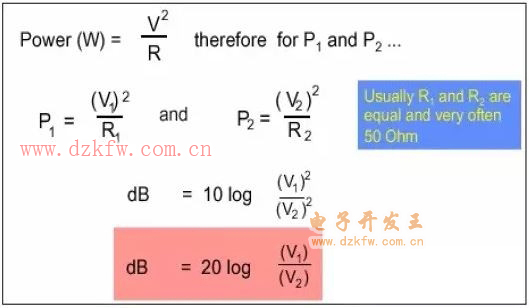 通过以下的推导可知电压由分贝表示为(注意有一个前提条件为 R1=R2):