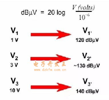 通常用 dBuV 表示电压的大小,dBuV 即是电压相对于 1uV 的值。
