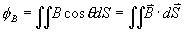 ,θ为磁感应强度B与面元dS的法线矢量n之间的夹角,dS=ndS为面元矢量。